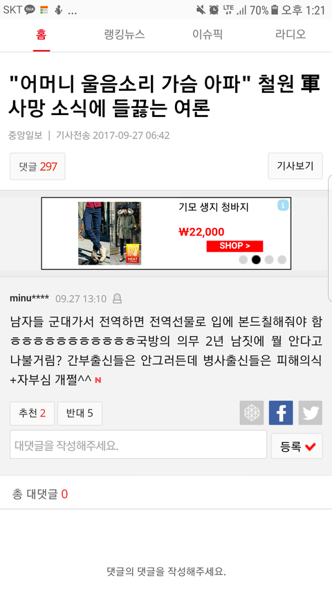 철원군부대 기사댓글인데..