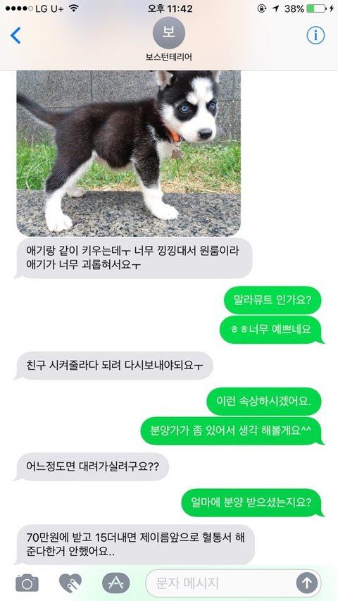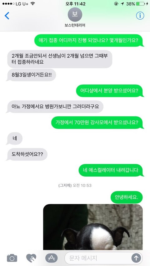 지난 09월 22일 금요일 강사모를 통해서 보스턴테리어를 분양글을