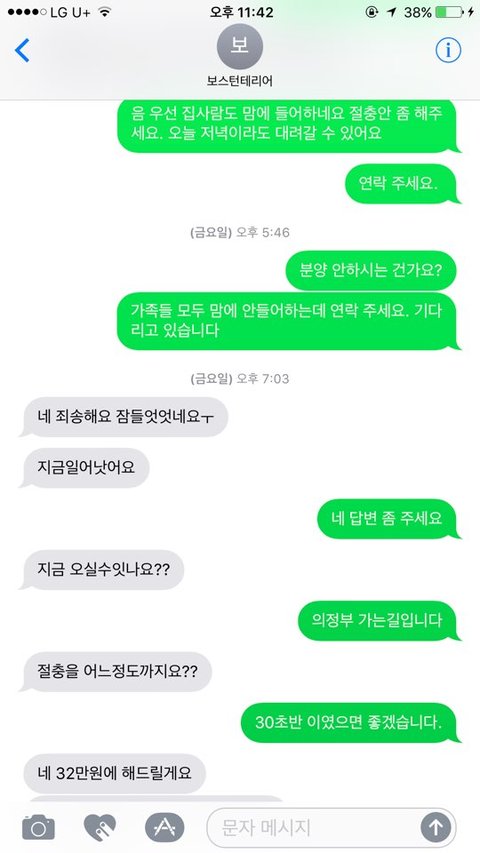 위 서로 문자내용에서도 나와있듯이 분양가를 절충안을 말씀드렸더니