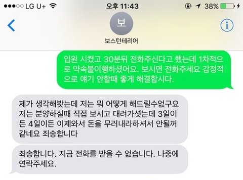 분명 환불에 대한 요구나 전액 병원비를 전가하거나 요구 하지 않았습니다.