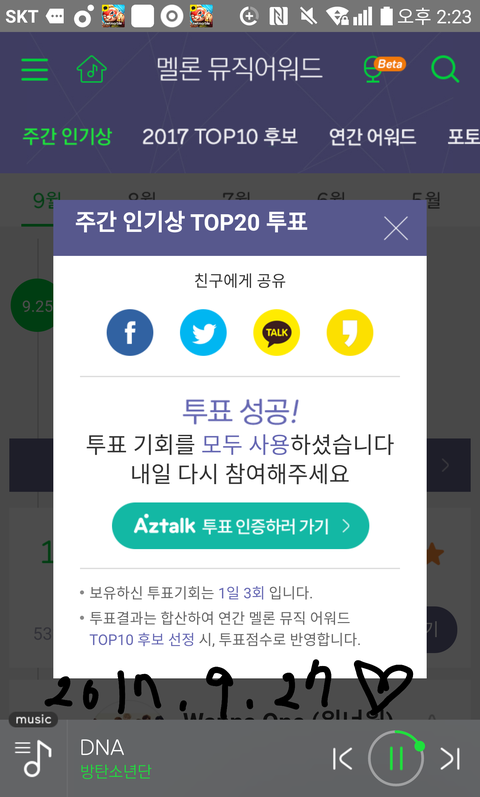 카카오스토리 보내기