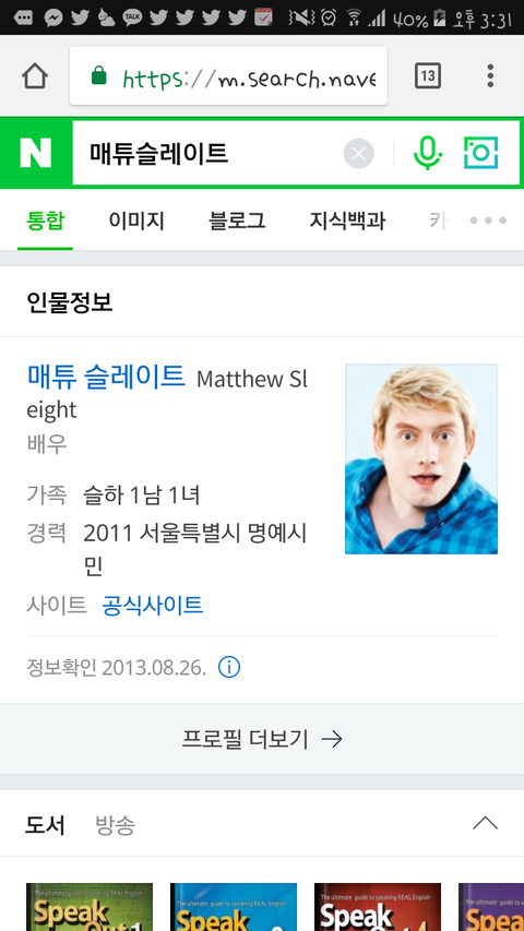 두번째로는 한 11년도에 염창동에서 영어 수업 받은언데 수료증 확인해보니까 제 6기 강서겨울방학영어캠프, 제 7기 강서토요영어교실 이라고 되어있어(나는 두번 수료했어) 하루에 한 네시간씩 수업 하는거였구 요즘에는 방송 나오시는지 모르겠지만 몇년전에 방송볼땐 나오시더라 일요일?에 하는 서프라이즈 나오셨던 분이 저기 영어 강사분이셨구 이름은 매튜! 오랜만에 찾아보니까 추억 돋는다 나이는 대부분 동갑이었던 거 같다 여자애 하나는 영어 이름이 주디judy 였던게 기억나 그 외에는 기억나는 이름 하나도 없어