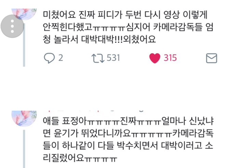 이거 애들이랑 아미들 엄청나게 힘들었을텐데 저번처럼 방송 사고 나거나 하면 진짜 앰넷 진짜 부들부들...갔다온 아미들이 무대 엄청 쩐다고 해서 기대는 너무나 하고 있는 중
