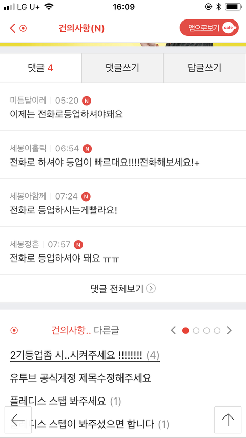 등업신청계속해도 안올라가서 건의사항들어가봤는데 전화?로해야한ㄷㅔ