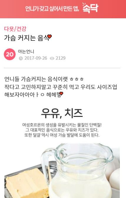 말그대로 가슴 커지는 음식을 알려줄게요...저는 오늘부터 이 음식만 먹고 살려고요..참고로 주변에서 별명이 개미찌찌에오...ㅅㅂ...ㅏㅎ