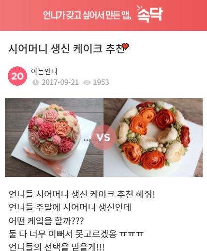 저는 20대 후반 유부입니다..제가 시어머니 케이크를 신경써서 여러사이트에 물어물어골라서 사드렸더니 .. 어머니께서 저보고 이딴데 돈쓰지말고 반찬이나 하나 더 사먹으라고합니다...제가 뭘 그렇게 잘 못 했나요..