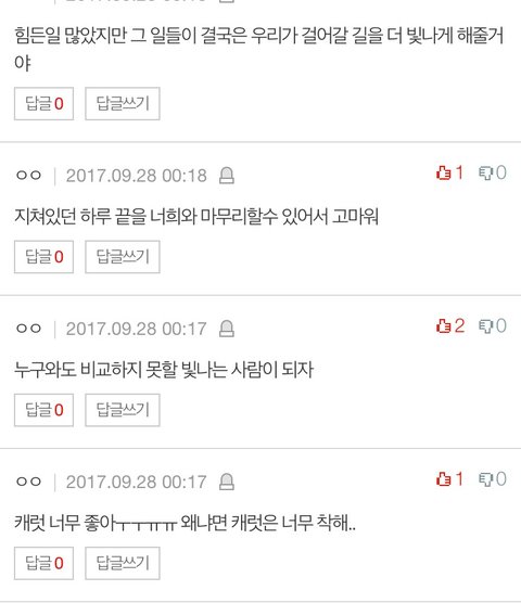 여긴 익명사이트고 불특정 다수랑 이야기 나누는건데 이렇게 애착가고 그럴줄은 몰랐다 누군지 몇명인지 어떻게 생겼는지 하나도 모르지만 힘들땐 위로도 받아가고 같이 재밌게 놀고 한다는게 참 신기해ㅋㅋㅋ 이렇게까지 가수를 같이 좋아하는 팬덤끼리 돈독한것도 너무 신기하고ㅋㅋ
