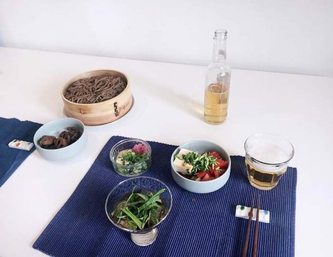 얼음메밀소바 연두부 토마토 부추 샐러드 차가운 맥주