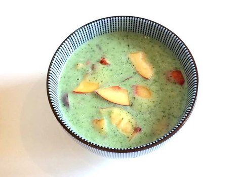 많은 시금치 바나나 요거트 우유 꿀 아몬드 가루를 같이 갈아요.