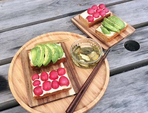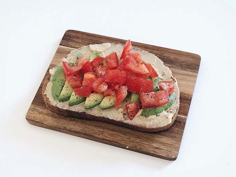 9. 후무스를 바른 곡물빵에 아보카도 토마토 후주를 차곡차곡