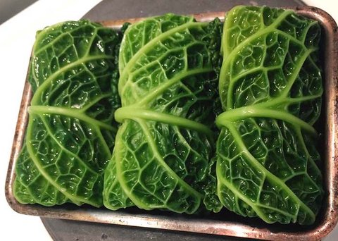 후추 간소고기 양파 마늘 파 애호박 생강을 삶은 양배추로 감싸요.
