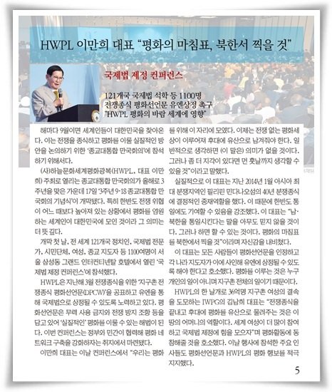 바로 민간 평화단체인 HWPL에서 주최한 만국회의 3주년 평화행사로,