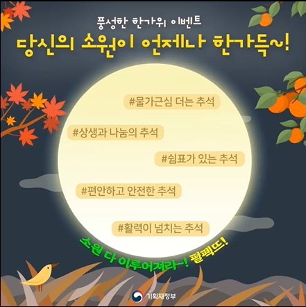 추석에 바라는 소원만 댓글로 쓰면 응모되고다이슨청소기, 애플워치, 스타벅스 등 경품도 있어요
