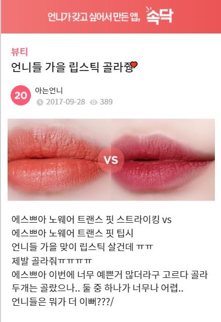 아 립스틱 살건데 둘 다 너무 예뻐서 개고민이네ㅠㅠㅠㅠ