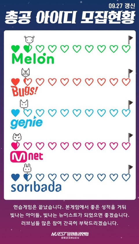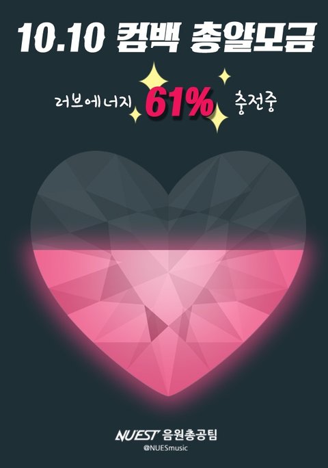 우리 게이지 점점 차고있어 계속 아이디만들어주는 럽들아 힘내자!! 나 하나 안한다고 라고 생각하지말고 나아니면 이번 순위 망한다 목매야하는 시기다 라고 생각하고 컴백둘째주 까지만이라도 진짜 죽자고 해보자 모두 화이팅!!!!!!!!! 프듀끝나던날 울던걸 잊지말자