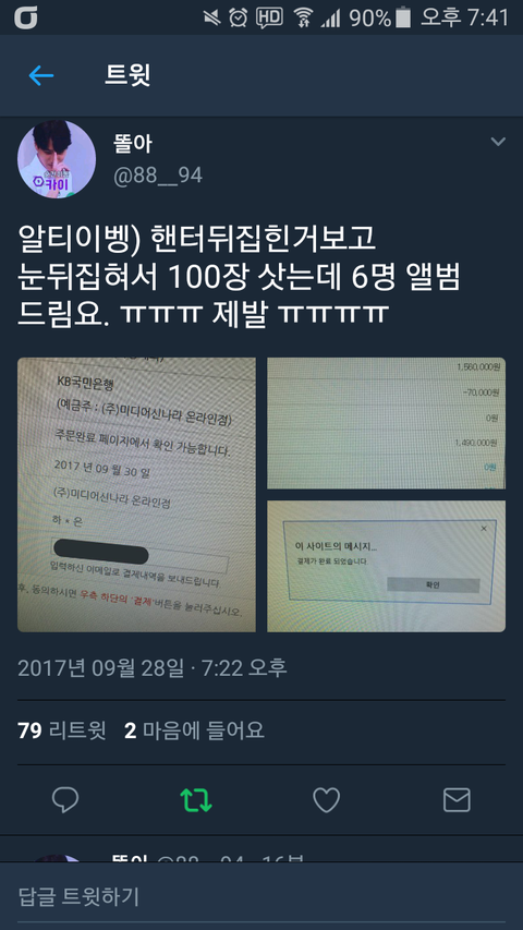 "햰터 뒤집힌 거 보고 눈 뒤집혀서 100장 샀다" 지난번 베톡이랑 내용 개똑같은 거 같은데