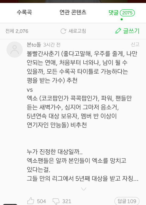 가수들 리뷰중에서도 추천순은 많이들 보던데 어떡해ㅠㅠㅠ 맨날 우리한테만 ㅈㄹ이네 ㅠㅠ 이와중에 추천수는 계속 올라가고 있음....