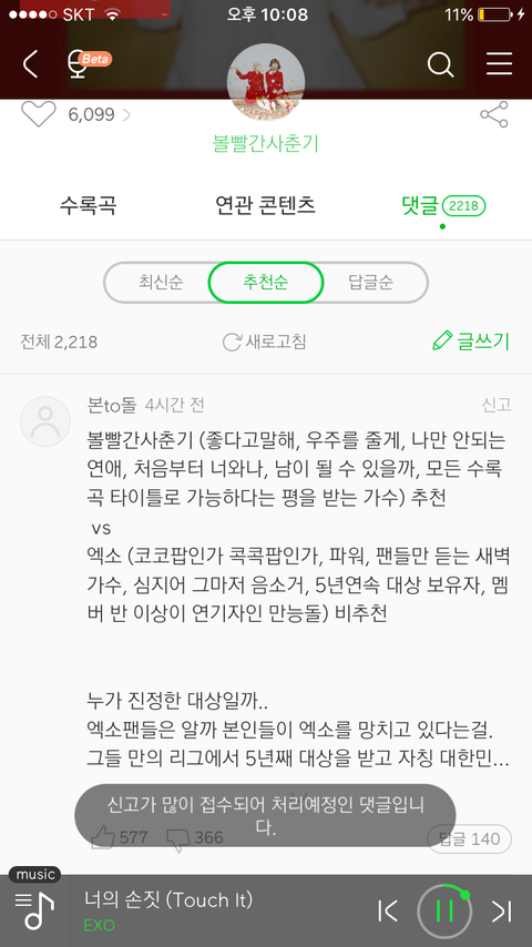 아니 타가수 리뷰창에 엑소는 왜 언급되는데?