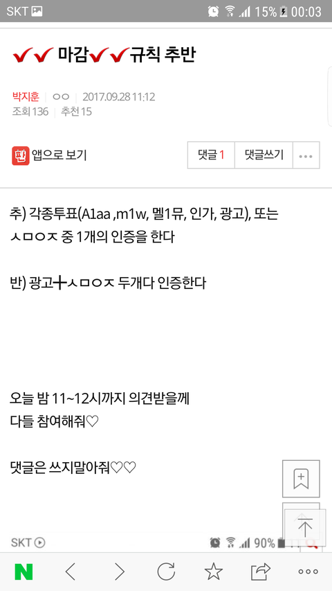 ->스밍인증,각종투표중 택1 인증으로 결정났어!