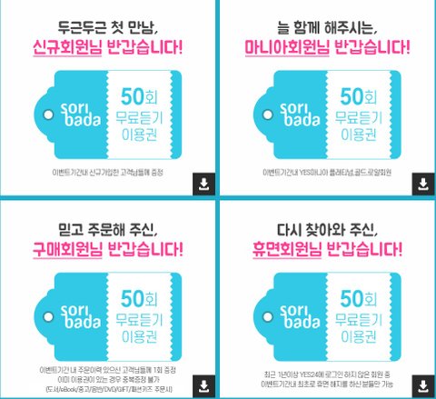 http://www.yes24.com/campaign/00_corp/2017/0821Soribada.aspxyes24 - 소리바다 무료스밍권