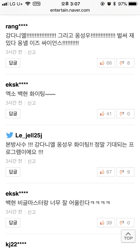 백현 댓글 베댓내리려고 비추테러중이라는데 트루임? 강다니엘 댓글 비추랑 백현 댓글 비추랑 거의 10배차이나던데