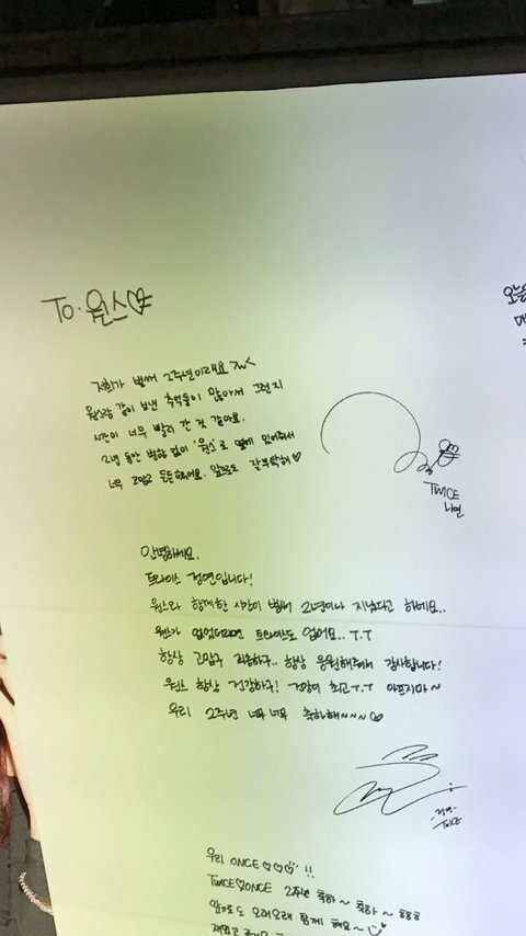 알고보니까 트와이스 2주년 기념해서 트와이스가 원스한테 전광판을 역조공한거였어ㅠㅠㅠㅠㅠ아랜 멘트들