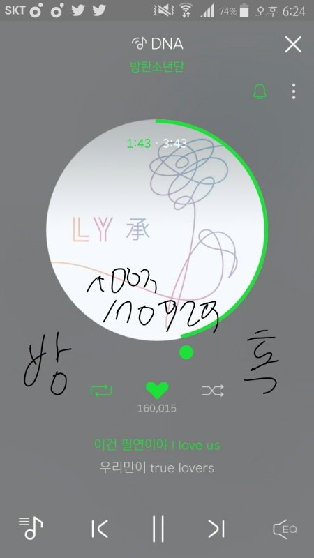 음반 해외성적 역대급 기록 찍었다고 해서 해이해지지 말자 한동안은 스밍 투표 독려에 집중하자 방금 음악은행 음원점수 봤지?