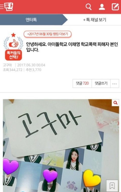 난 이채영 전내 싫다 학교에선 애들 개 패고 다님서 방송에선 착한 척 쩔고 얼굴이 예쁨 뭐해 인성이 씹 드러운데
