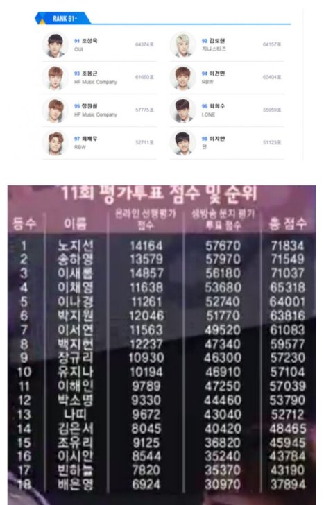 증거○) 아학1등 득표수=프듀2 95등 득표수