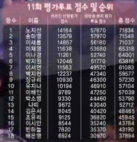 여기서 11화 투표수가 2주 합산이 아니라 11화 단독이라고 할 경우