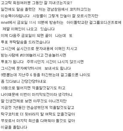 디씨에서 나온 문투 수만 해도 특정 연습생의 과반수를 넘는데 저번주랑 이번주 문투가 이정도밖에 차이 안 난다는게 오디션프로 애청자로서 이해가 안돼