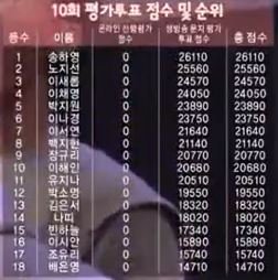 1~3위가 쟁쟁한 라이벌구도였던것도 아닌데, 문투 결과를 실시간으로 공개해서 경쟁 유도한 것도 아닌데, 1,2,3위가 마치 서로 표수를 맞춘 것처럼 나란히 71xxx표이고 바로 다음 4위가 갑자기 표수가 폭락해서 65xxx표인 점도 이상하고