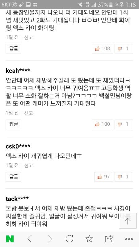 위에랑 동일인물이라는 게 믿겨지지가 않는다 다른 사람같아 진짜 프로아이돌 김종인ㅠㅠㅠㅠㅠ 춤도 잘 추고 얼굴도 열일하고 이제 연기도 잘하고ㅠㅠㅠ 어떻게 끝내야될 지 모르겠다 그냥 김종인이 너무 좋고 네티즌 반응도 좋아서 쓴 글,,