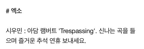 시우민의 추석 귀성길 추천곡