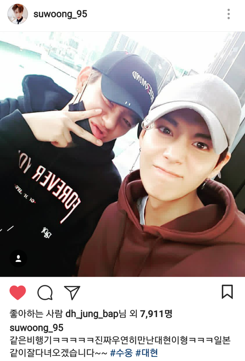 김포공항에서 우연히 만났대. 같은시간 같은비행기로 일본 가니까 대웅 bro 심심하진않겠다.