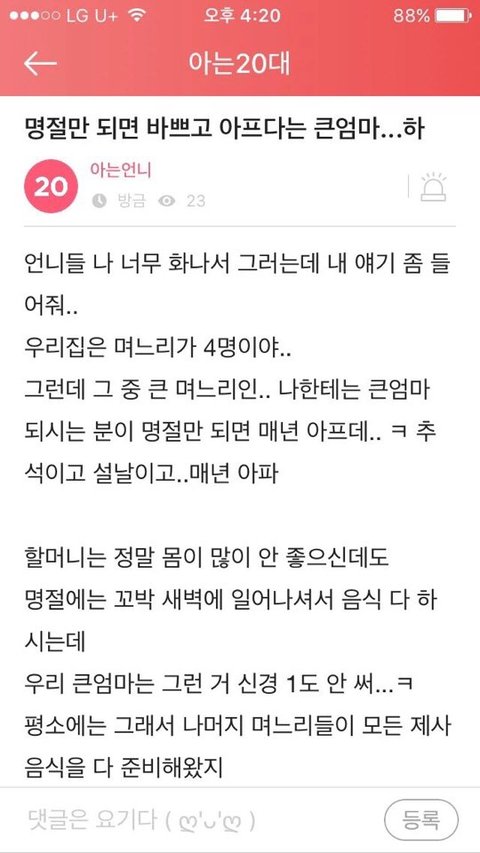 추석만 되면 아프다는 큰엄마...왜그러는걸까요?