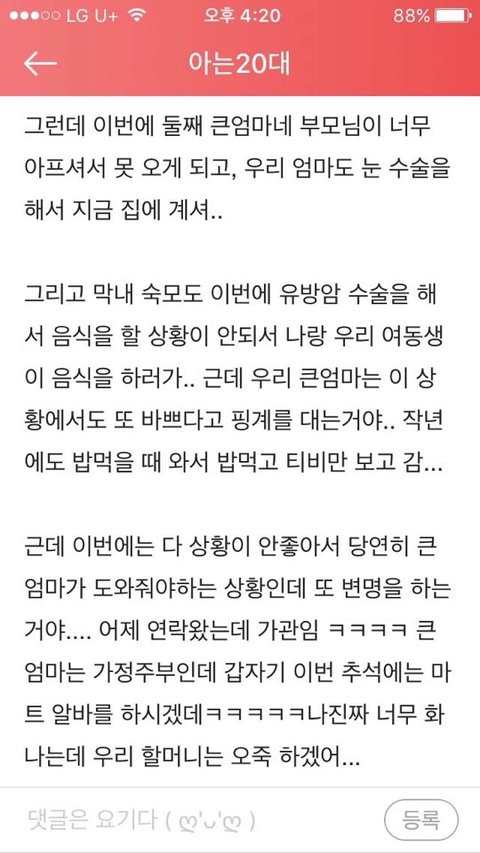 보다가 우리집 같아서 가져옴 ㅋ 아... 진짜 우리 숙모가 딱 저래 진짜 노답중에 노답... 진짜 개빡친다집안에 저런 사람 한명씩은 꼭 있음....