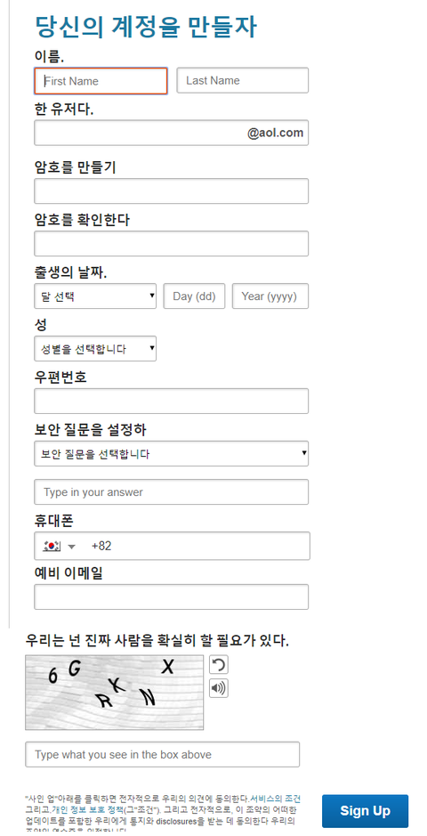 Aol mail이란데데 화원가입 안어려워 ㄱ ㄱ ㄷ ㅇ ㄴ ㅇㅂ ㅇㅎ 다막혔음 여기도 해봐 나지금 두개하고 또하나 만드는중