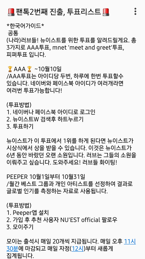 전세계 러브여러분, 뉴이스트W는 10월10일 컴백합니다! 성공적인 컴백이 될 수 있도록 우리 모두 화이팅해요