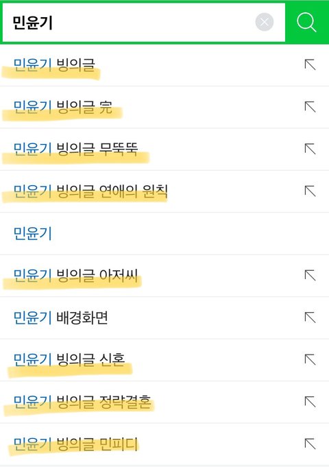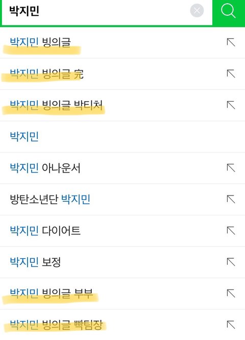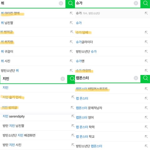 사진들 좀 봐 방탄소년단 빙의글, 민윤기 빙의글 등등 연관검색어에 빙의글이 떠 소비하는 게 나쁘다는 게 아냐 이렇게 연관검색어에 뜨는 게 나쁜 거지 그래서 연관검색어 정화를 했으면 좋겠어