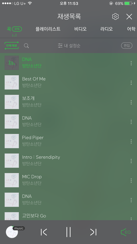 일단 이렇게 반복재생 해노쿠