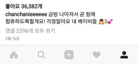 차니 말투 너무 쏘 스윗....진짜 사랑해