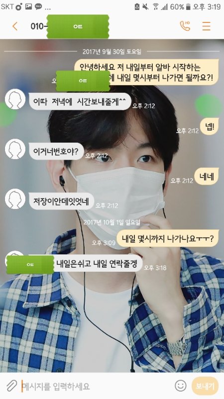 네? 왜요? 저랑 같이 교육 받으러간 OO이한테는 내일 12시30분까지 출근하라고 하셨다던데 어떻게 된 일인가요?안그래도 29일 저녁때 시간 보내주신다면서 안보내주셔서 기다렸어요.. 저 원래도 9월30일부터 10월 9일까지 알바하기로 저 교육해주신분한테도 말씀 드렸었고 알겠다고하셨는데...