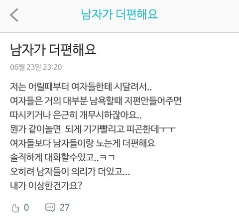 트젠90프로는 업소녀네요 수술비가 비싸서 업소뛴다면서 수술하고 나서도 왜 계속 업소에서 일하죠? 트젠이 생각하는 여성상은 남자들 후려...
