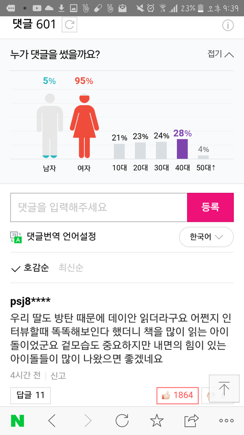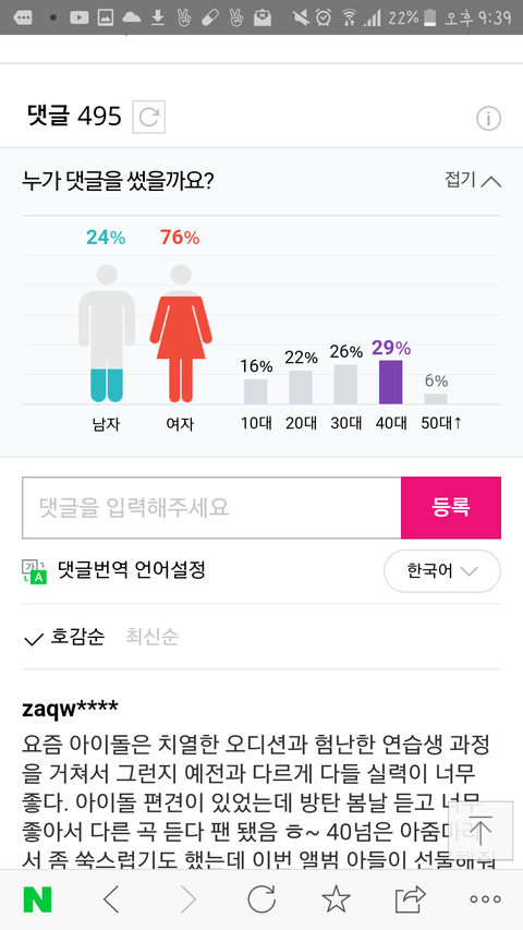 방탄기사가봤는데두기사모두40대가젤많더라구..좋은현상맞지??10대20대아미들은어딨지??
