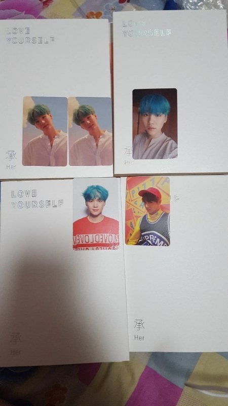 이삐들 이번앨범 포카누구누구나왔어? 나같은경우있어?세트샀는데 한앨범에 포카두개에 한멤버가4장나왔어 ㅋㅋㅋ 나는진짜 앨범사면 윤기오빠꼭나오거든..안나오면이상하고그런데 이번엔 한방에 4장나왔네ㅋㅋㅋ 엔오-윤기 화양연화파트2 윤기 영포에버 윤기 윙즈때는 윤기2장 썸머패키지셀피북 윤기(지금은정국이랑교환했지만) 렙유셒 윤기4장....어이없고 또 신기하기도하고 ㅋㅋㅋㅋ 다들 특히 자주나오는 뭔가 인연인듯싶은멤버가있어?