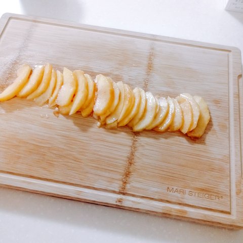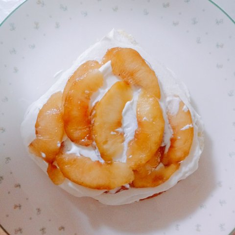 복숭아 올리고 다시 생크림→복숭아→생크림→제누와즈 순 으로 올려!