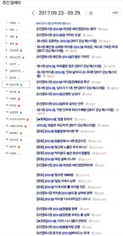 9월4째주 비이버 주/간/검/색/어 순위 들고왔어 (ㄴㄱ펌)