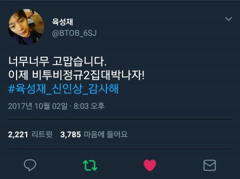 그렇게 올해의 스타상과 신인상을 받은 후 성재가 올린 짹