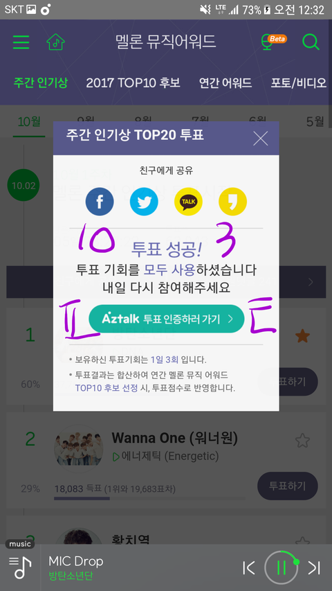 투표하러 들어갈라고 하는데 자꾸 오류뜸ㅜ
